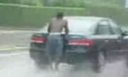 Wenn man keinen Strand in der Nähe hat und gerne surft, muss man halt andere Alternativen finden um surfen zu können. Dieser Typ ist dabei sehr kreativ.