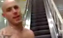Auf so eine kranke Idee muss man erst einmal kommen: Nackt eine Rolltreppe herunter zu rutschen. Das brennt sicher schön wenn die Haut abbremst.