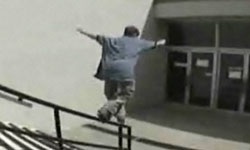 Wer wird wohl gewinnen? Der Skater oder die Glastür?