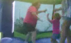 Wenn man Übergewicht hat sollte man in einer Hüpfburg, die eigentlich für Kinder gedacht ist, etwas vorsichtig sein…