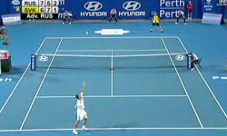 Der Tennisspieler weiß wie er die Schiedsrichterin auf seine Seite gezogen bekommt. Charmant, charmant.