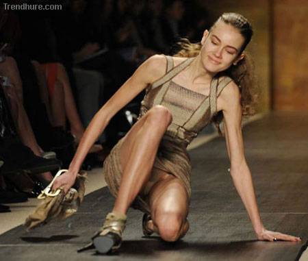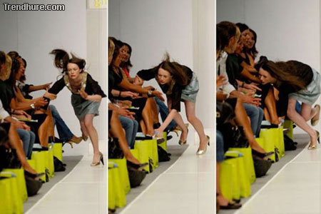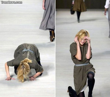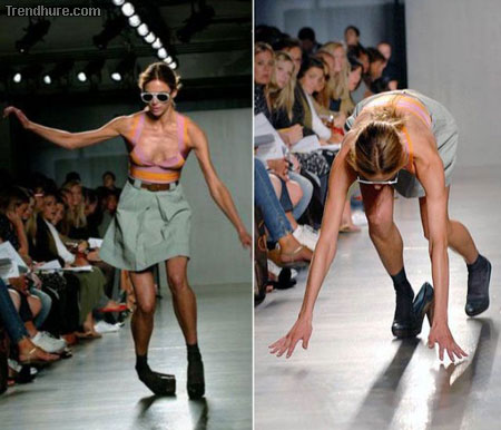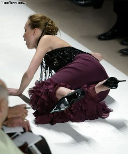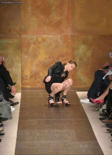 Die sollten mal Sicherheitschuhe tragen.Aber diese Kleiderpuppen sind eh hohl im Kopf und die Designer alle schwul.