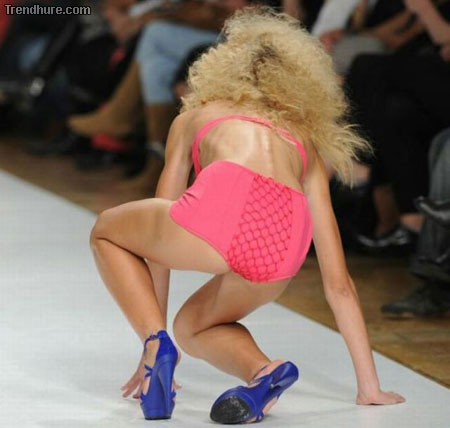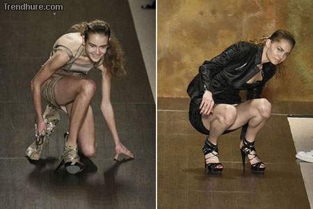 Bei den Schuhen kein Wunder, dass Models manchmal in die Knie gehen.