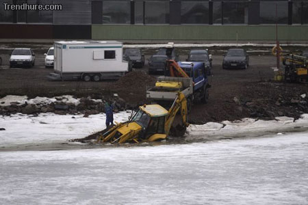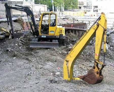 Ist doch offensichtlich was da pssiert ist: Die Schaufel ist in voller Fahrt nach unten geklappt.