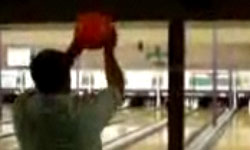 Er hat halt eine ganz spezielle Wurftechnik fürs Bowling entwickelt.