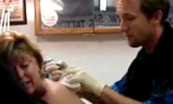 Es würde mich nicht wundern, wenn der Tätowierer einfach aufgehört hätte die alte Dame zu tätowieren.
