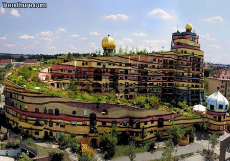 Die Waldspirale wurde vom Wiener Künstler Friedensreich Hundertwasser gestaltet, fertiggestellt wurde das Gebäude im Jahr 2000. Der Wohnkomplex umfasst 105 Wohnungen, eine Tiefgarage, ein Café, eine Bar und einen Kiosk. Im Innenhof befinden sich ein Kinderspielplatz sowie ein kleiner künstlich angelegter See. Zu den Besonderheiten des U-förmigen Gebäudes gehört die auffällige Fassade, die keinem Gestaltungsraster folgt, Fenster, die gleichsam “aus der Reihe tanzen”, und Baummieter – Bäume, die aus den Fenstern wachsen.
