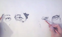 Mit beiden Händen gleichzeitig zwei Porträts zeichnen. Ich bin ja schon überfordert mich nur auf zwei Sachen zu konzentrieren…