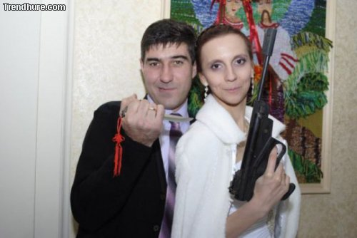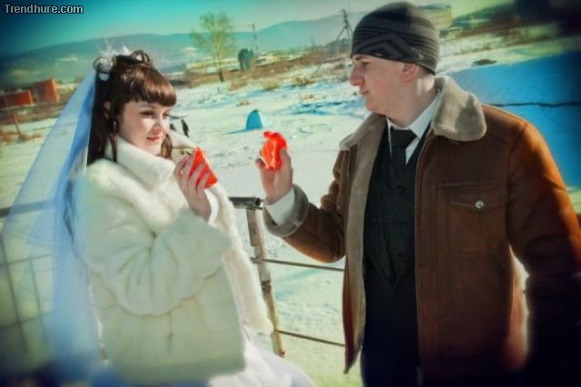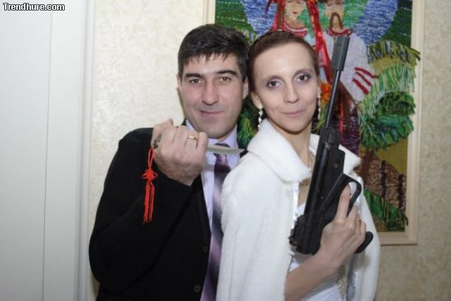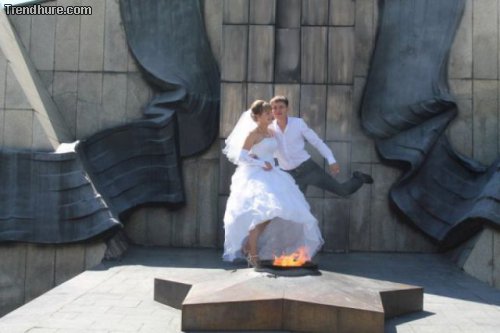 In Russland scheinen auch die Hochzeitsfotos sehr speziell zu sein.