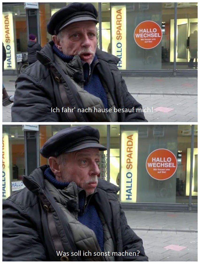 Gäbe es eine Zeitmaschiene, würde ich in die Vergangenheit zurückreisen und Links Vadda 5 Mark in die Hand drücken, damit er ihn in die Ecke spritzt.