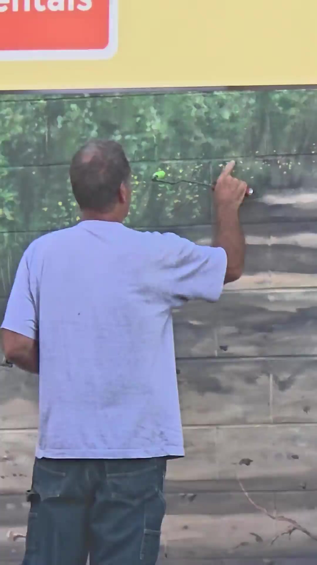Krass wie relastisch er die Wand bemalt hat. Halt, warte!
