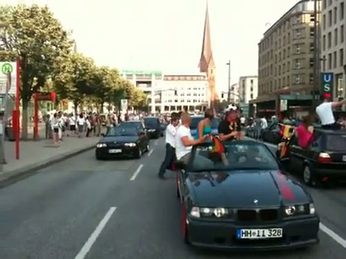lol… Die ganzen Assi-Prolls mit ihren krass getunten Golfs und BMW’s mit Kleinstmotorisierung, aber Lärm machen wie die Großen… Einfach nur peinlich… Hab ja nix gegen Nationalstolz (könnten die deutschen ruhig mal wieder öfter zeigen), aber das da oben ist ja das reinste Show-and-Shine Prolltreffen… peinlich, aber in Hamburg ja an der Tagesordnung…