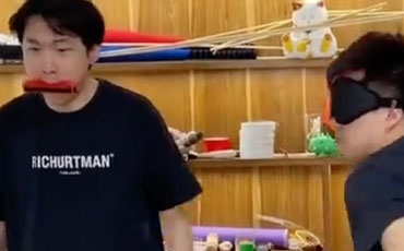 Spiel mit Gürtel, Mausefallen, Mundharmonika und Quietscheenten